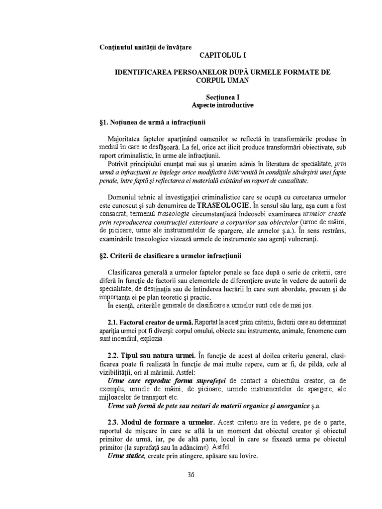 ile generale de clasificare a urmelor sunt cele de mai jos.