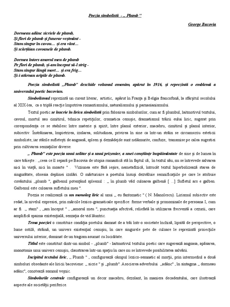 Poezia simbolistă - ,, Plumb ''