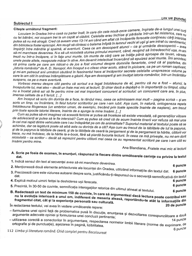 112 Limba $i literatura romané, Ghid complet pentru Bacalaureat.