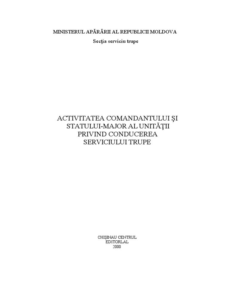activităţii comandantului şi statului-major al unităţii militare, precum şi variante