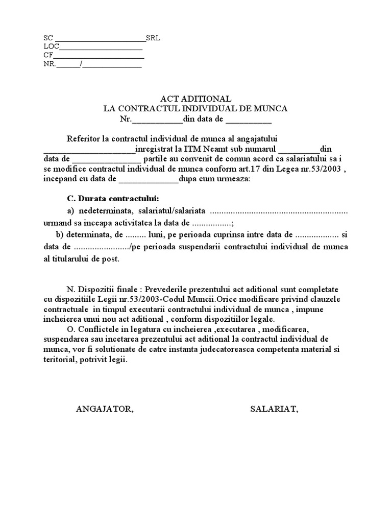 N. Dispozitii finale : Prevederile prezentului act aditional sunt completate