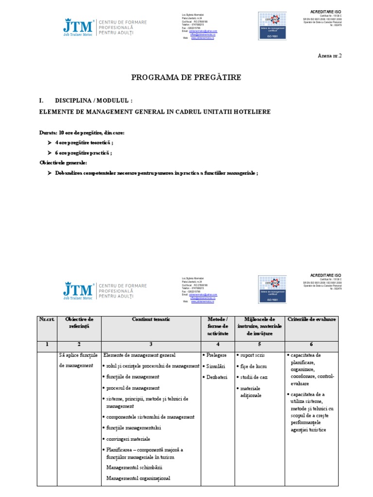 ELEMENTE DE MANAGEMENT GENERAL IN CADRUL UNITATII HOTELIERE