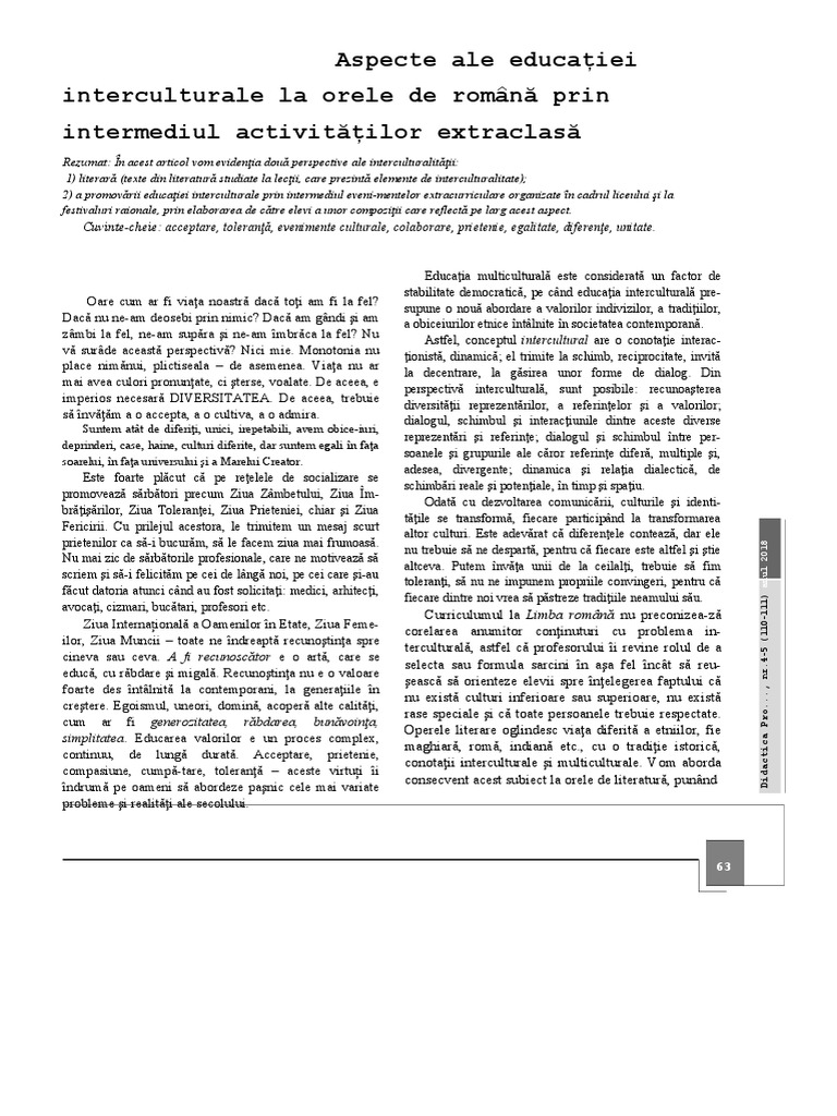 1) literară (texte din literatură studiate la lecţii, care prezintă elemente de interculturalitate);
