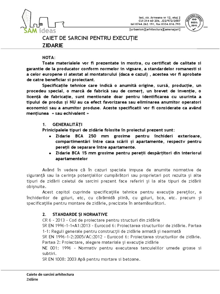 tipuri de zidării caietul de sarcini prezent face referiri și la alte tipuri de zidării