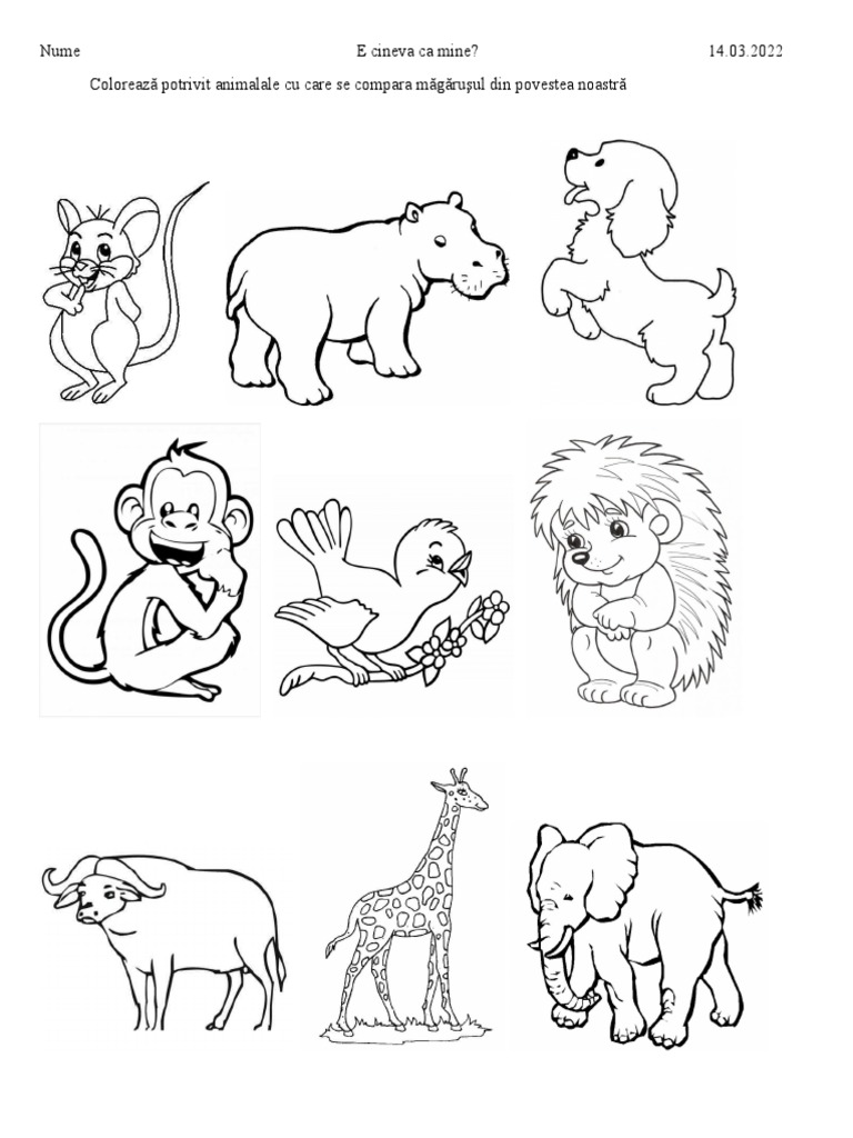 2022 Colorează potrivit animalale cu care se compara măgăruşul din povestea noastră