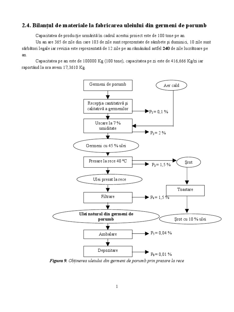 Bilanţul de materiale la fabricarea uleiului din germeni de porumb