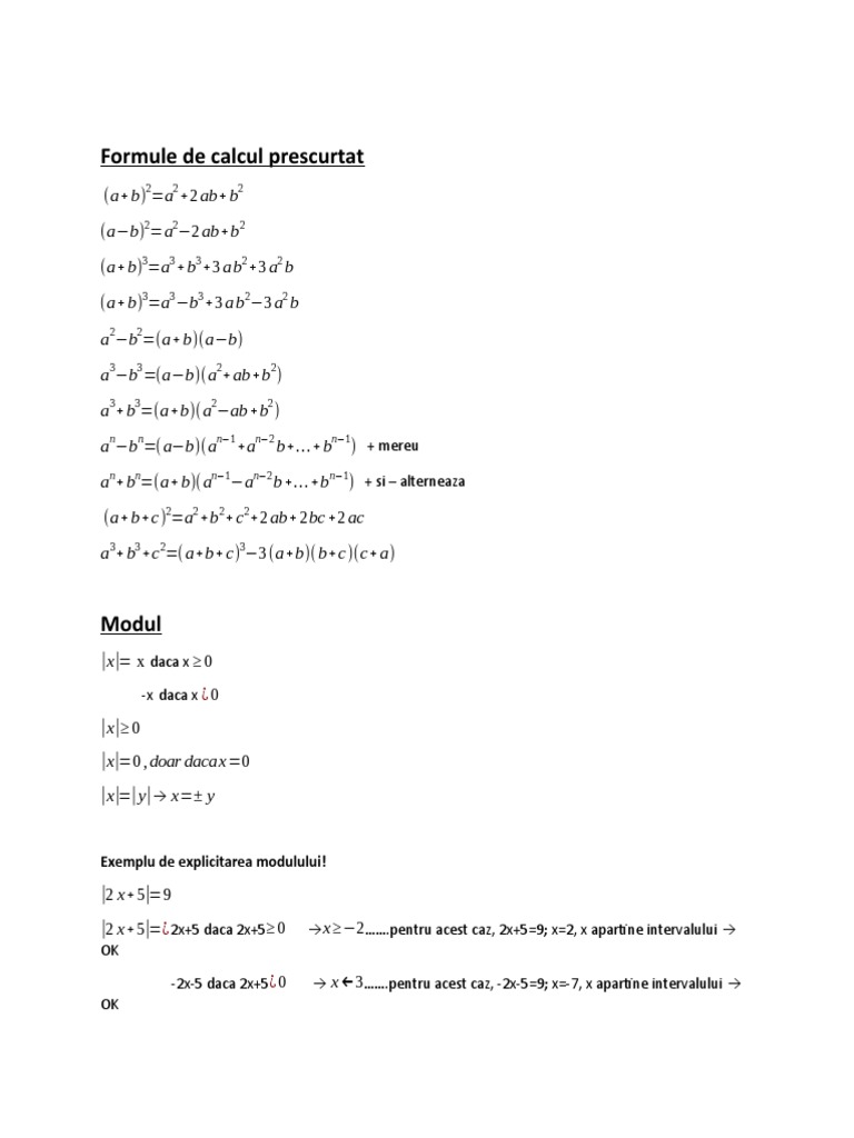 Formule de calcul prescurtat