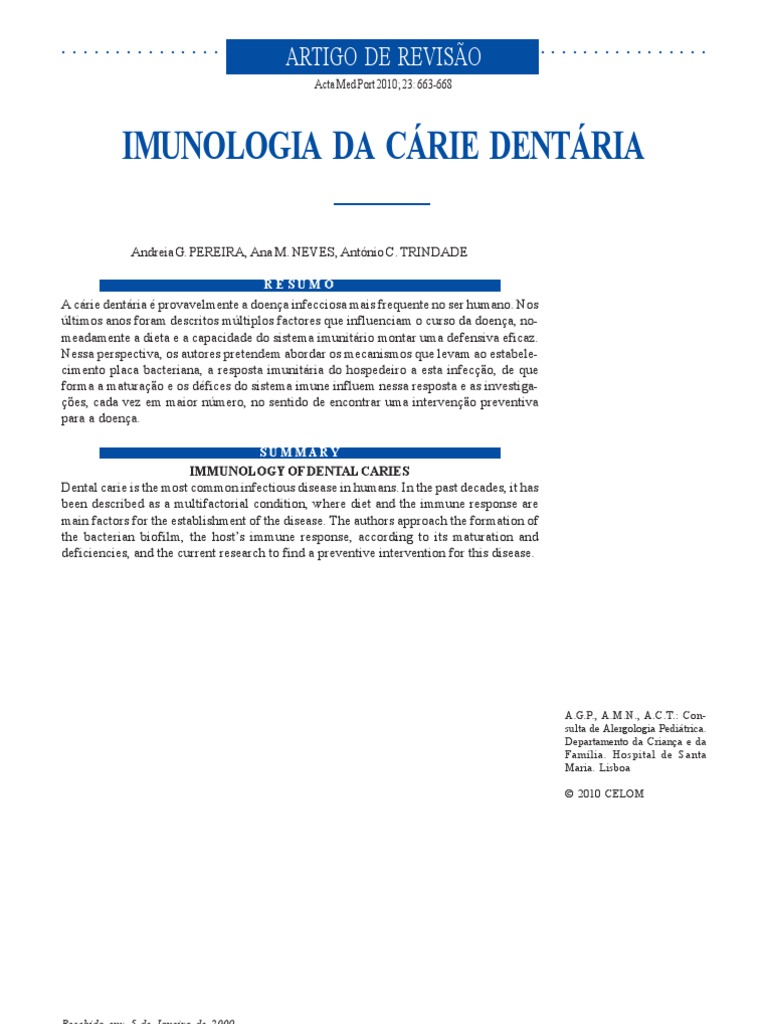Andreia G. PEREIRA et al, Imunologia da cárie dentária, Acta Med Port. 2010; 23(4):663-668