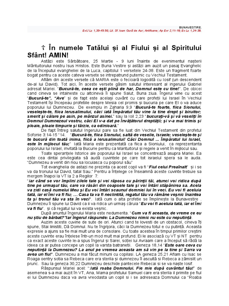 Mântuitorului nostru Isus Hristos. Este Buna Vestire și astăzi am auzit un pasaj Evanghelic