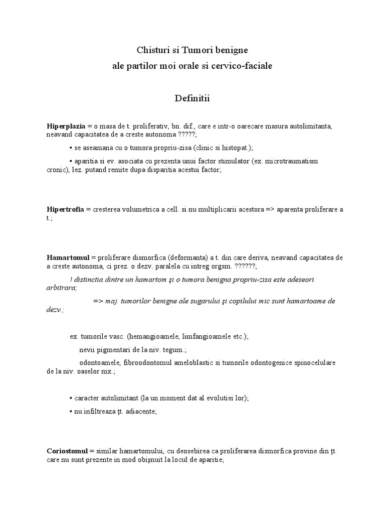 Chisturi Si Tumori Benigne Ale Partilor Moi Orale Si Cervico-Faciale Definitii