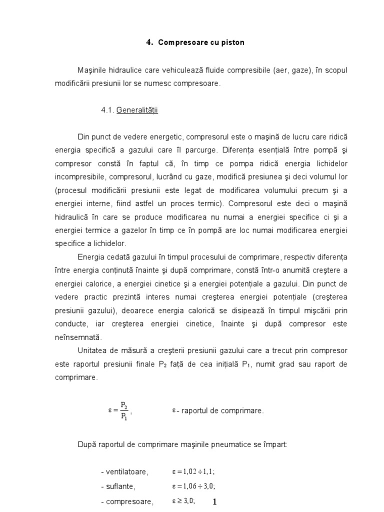 energiei interne, fiind astfel un proces termic). Compresorul este deci o maşină