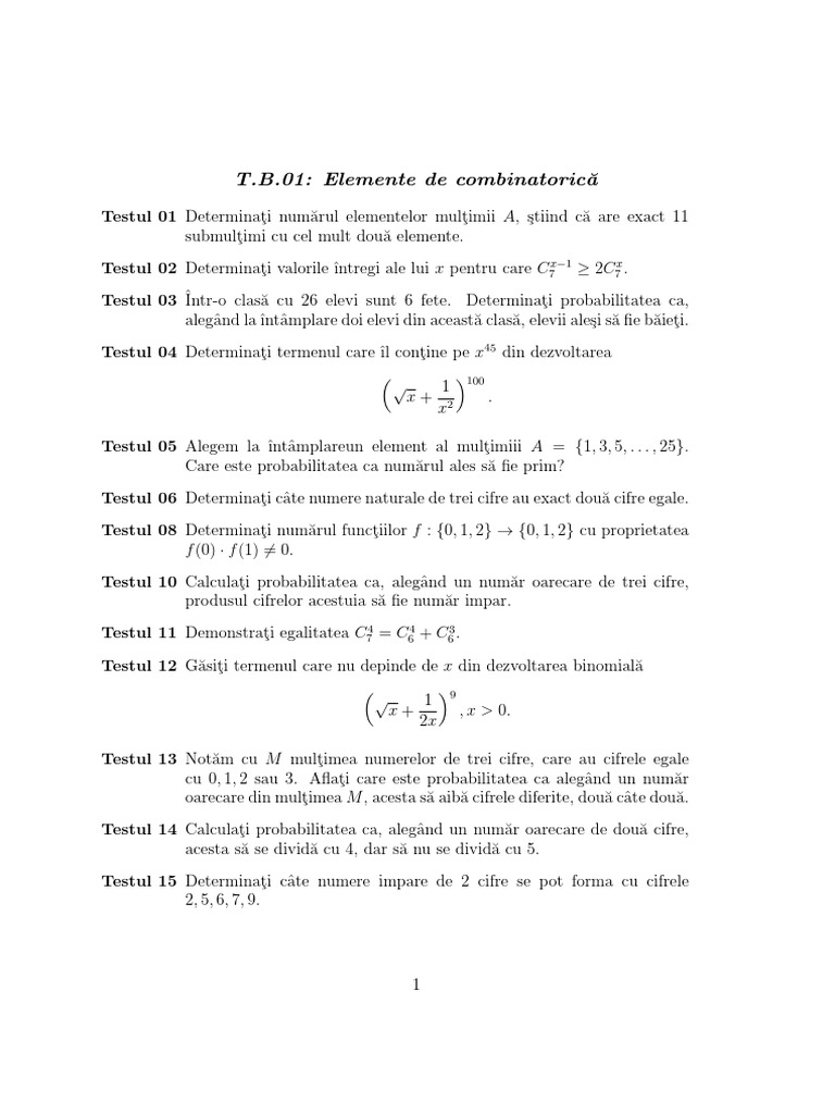 01: Elemente de combinatorică