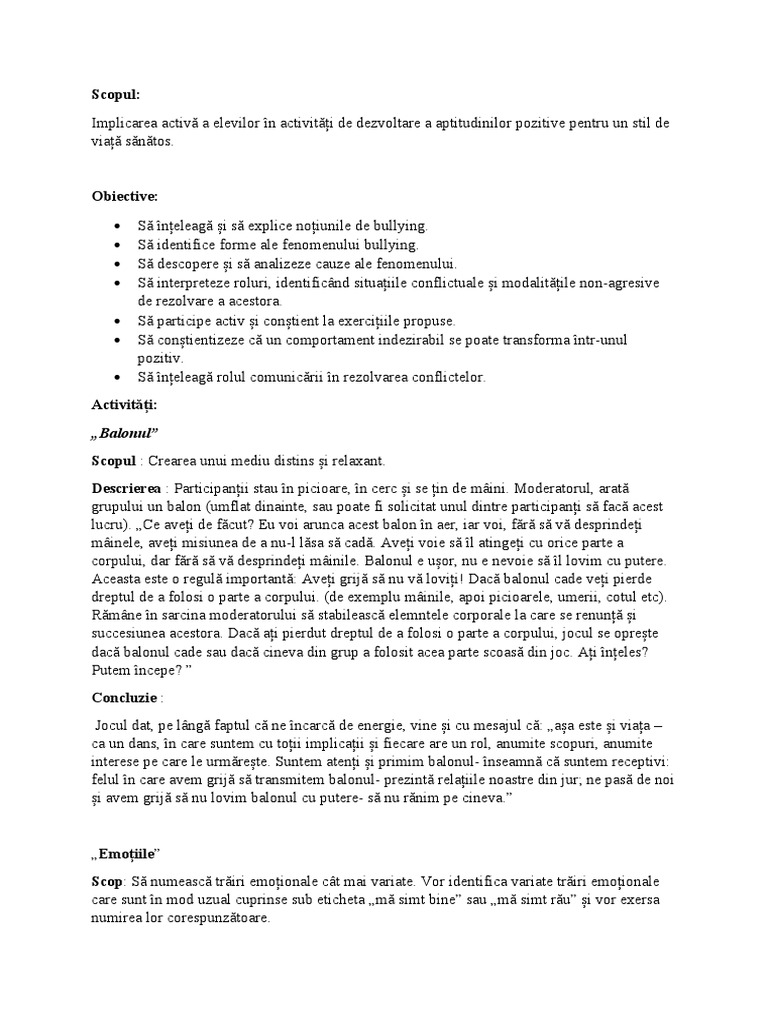 Descrierea : Psihologul cere elevilor să se așeze în cerc și pe rând să numească un obicei