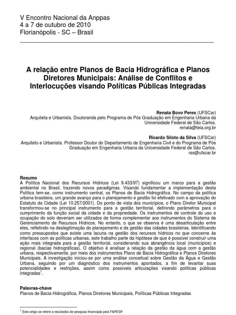 Planos de Bacia Hidrográfica, Planos Diretores Municipais, Políticas Públicas Integradas
