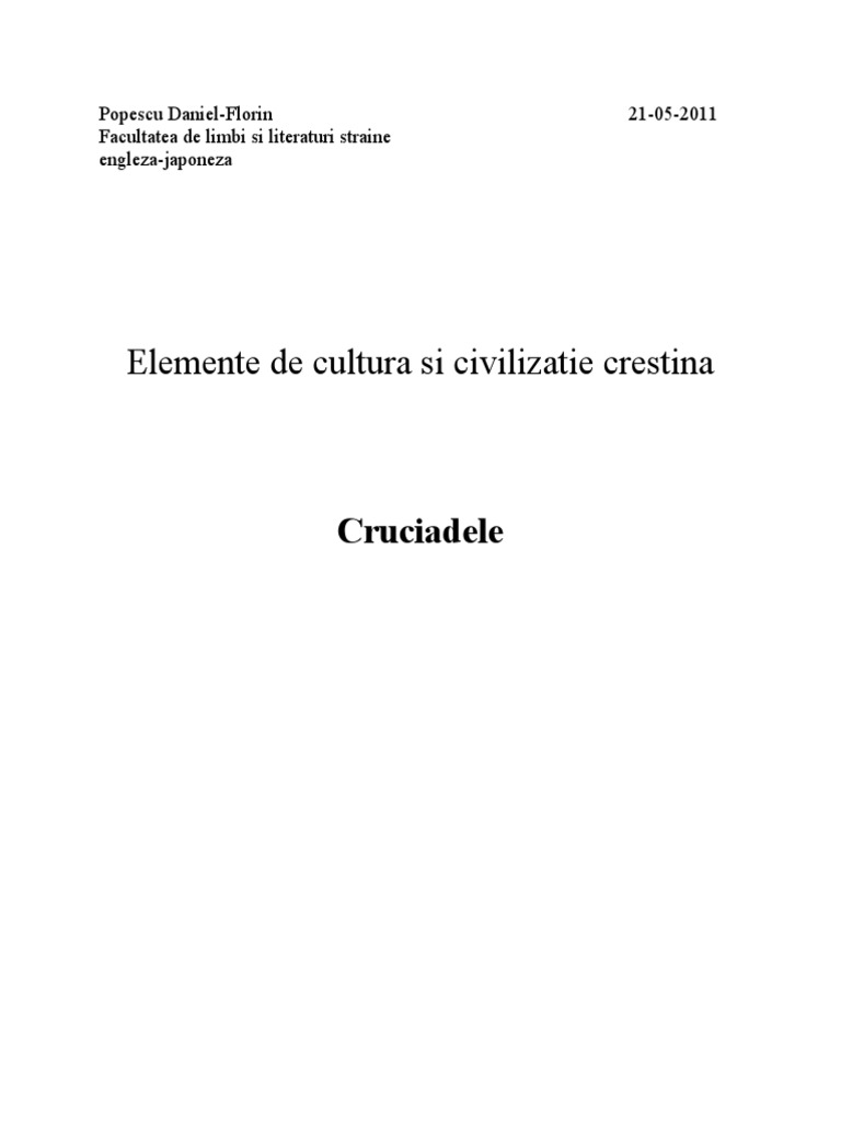 Cruciadele au fost operatiuni militare de cea mai mare anvergura pe care le-a