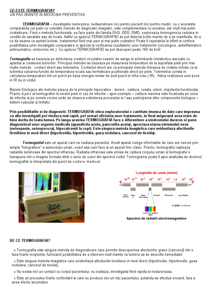 aparitia si cresterea tumorilor. Principiul metodei se bazeaza pe masurarea temperaturii de la suprafata pielii prin mai