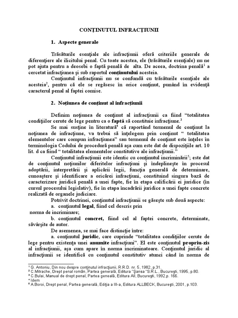 2. Noţiunea de conţinut al infracţiunii