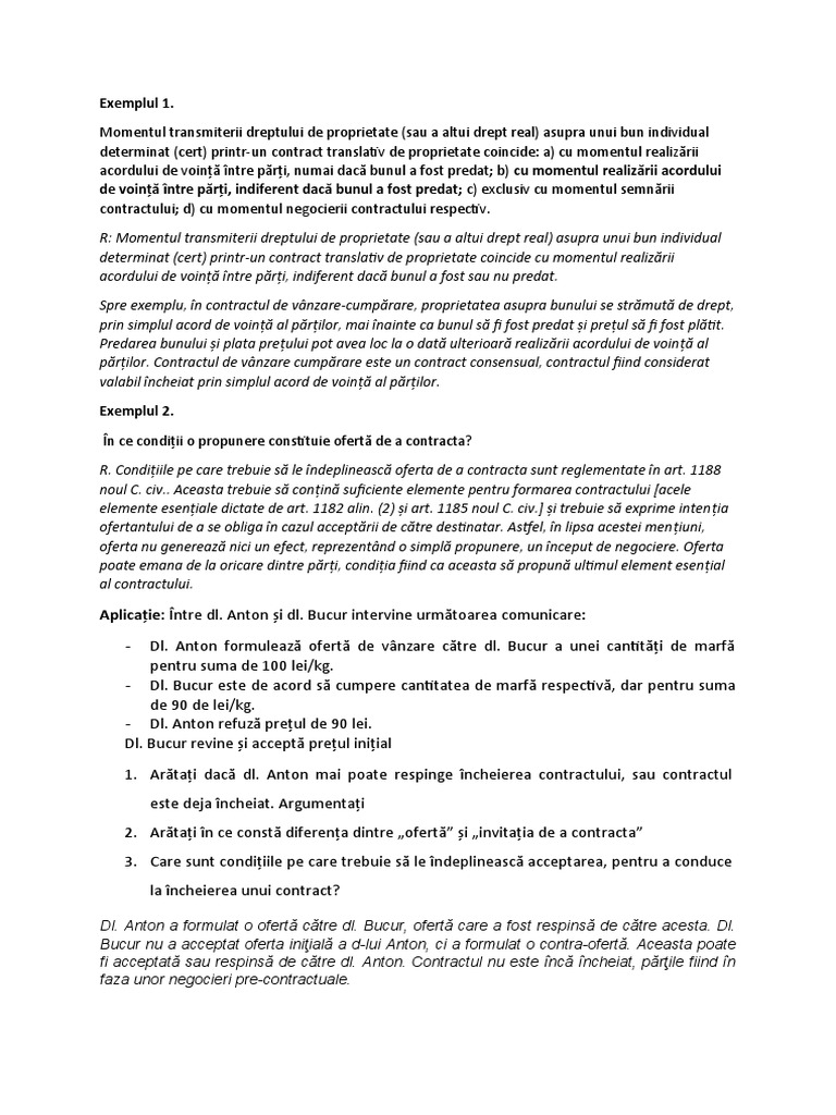 Între dl. Anton şi dl. Bucur se încheie un contract de vânzare-cumpărare având ca obiect un