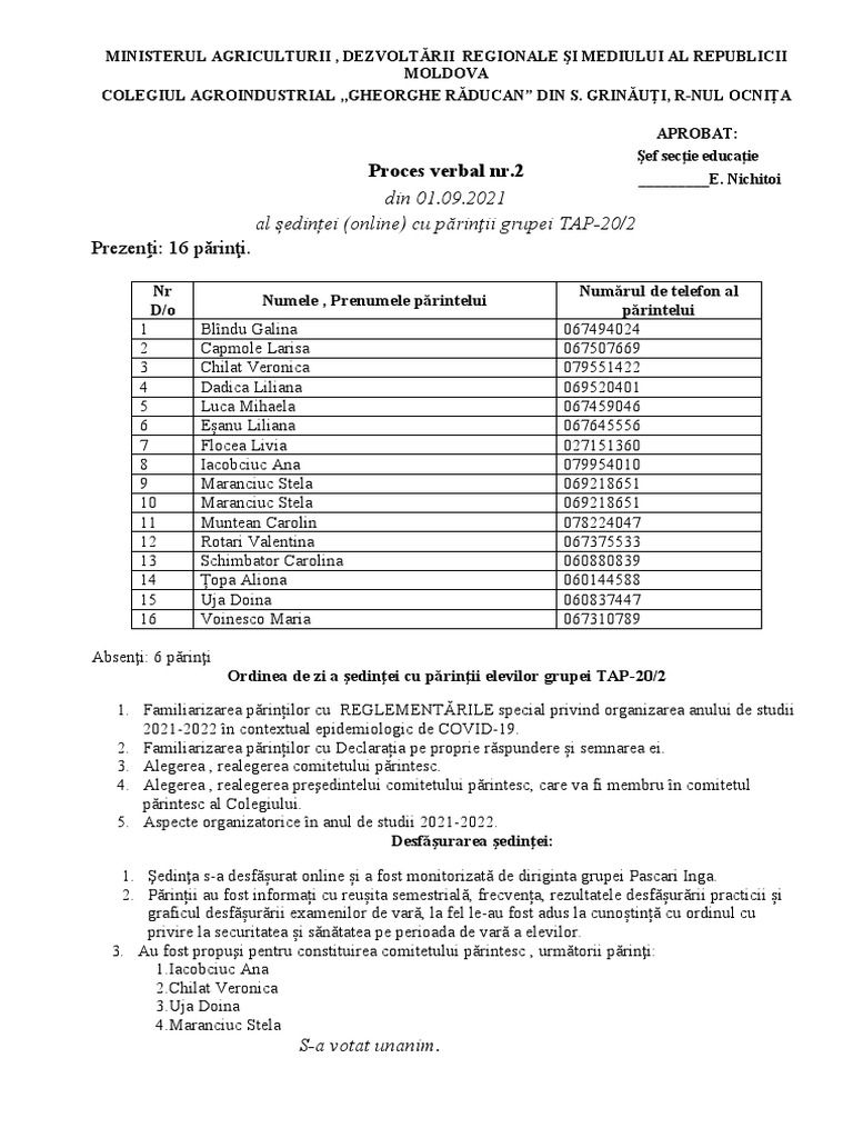 1. Şedinţa s-a desfășurat online și a fost monitorizată de diriginta grupei Pascari Inga.