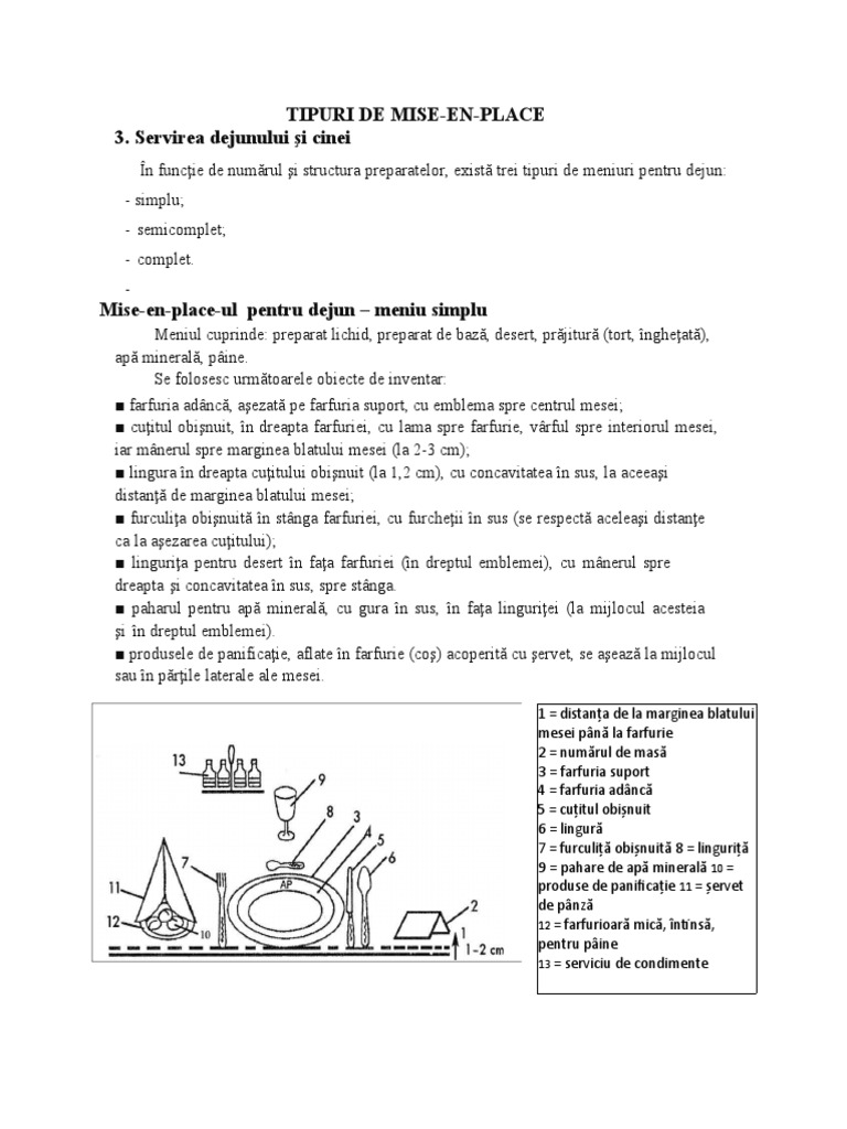Mise-en-place-ul pentru dejun – meniu semicomplet