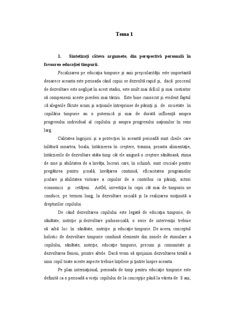 1. Sintetizați câteva argumete, din perspectivă personală în