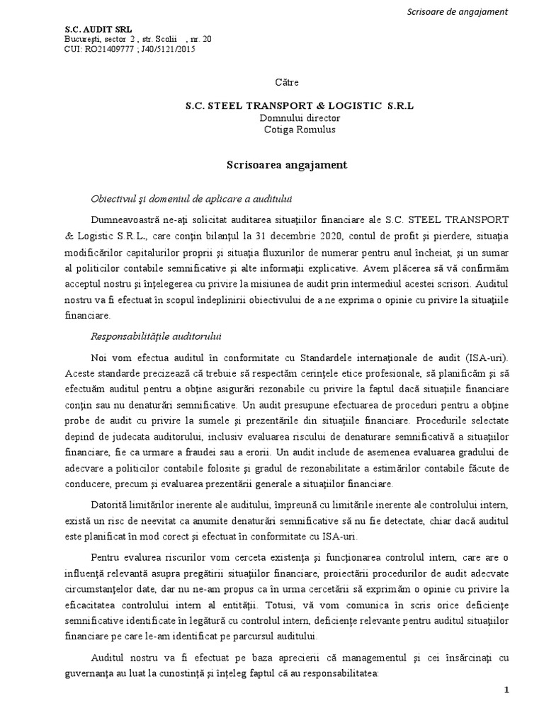 acceptul nostru şi înţelegerea cu privire la misiunea de audit prin intermediul acestei scrisori. Auditul