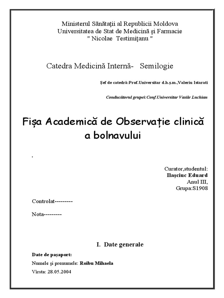 Pacienta s-a născut în satul Chirileni [Link] al 2 copil în familie avin un frate