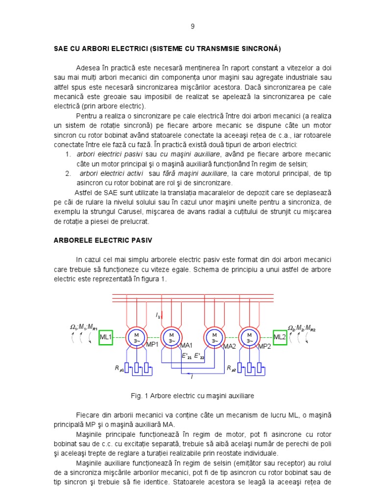 9 SAE CU ARBORI ELECTRICI (SISTEME CU TRANSMISIE SINCRON) Adesea n practic este necesar meninerea n raport constant a vitezelor a doi