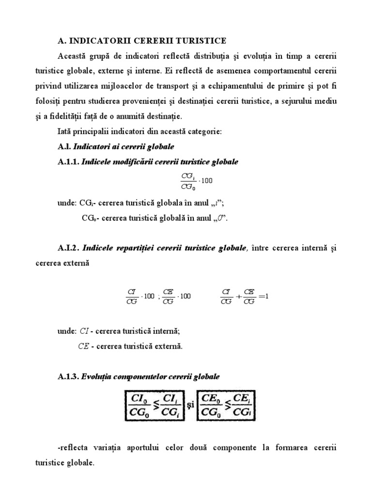 A. INDICATORII CERERII TURISTICE Aceast grup de indicatori reflect distribuia i evoluia n timp a cererii turistice globale, externe i interne.
