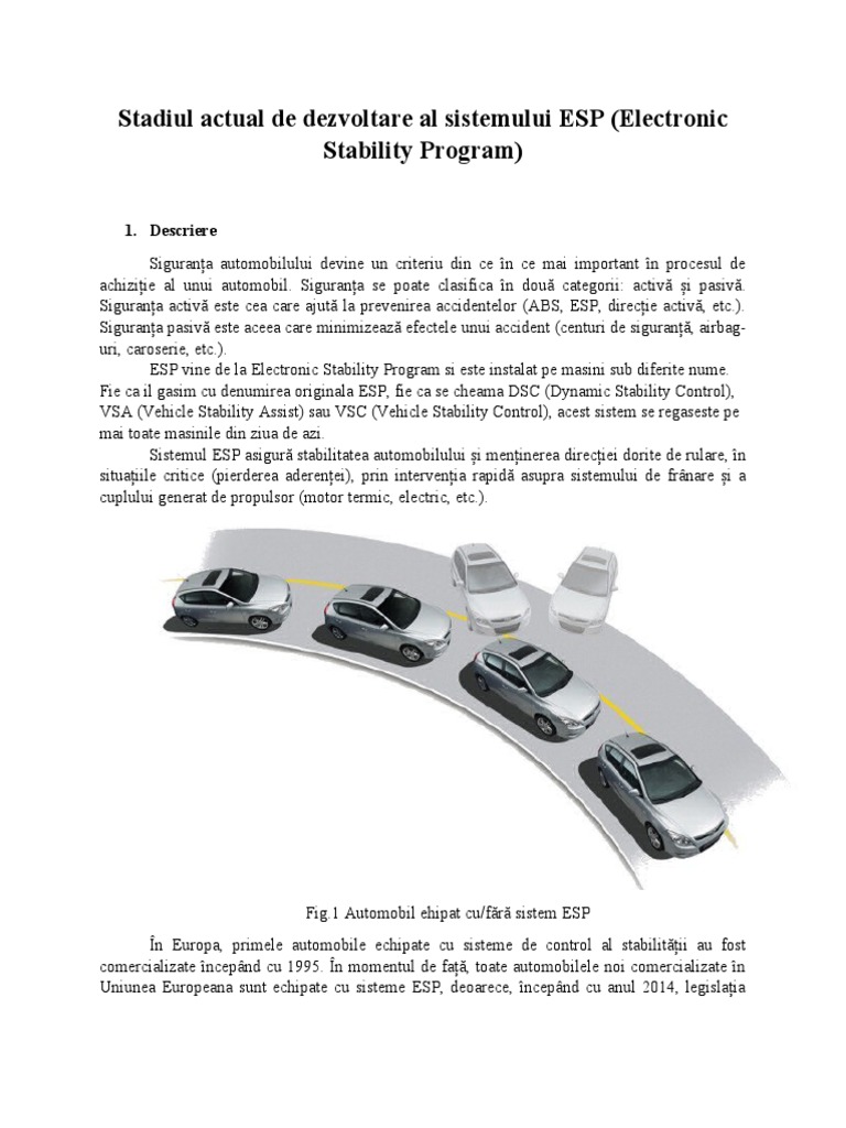 Uniunea Europeana sunt echipate cu sisteme ESP, deoarece, începând cu anul 2014, legislația