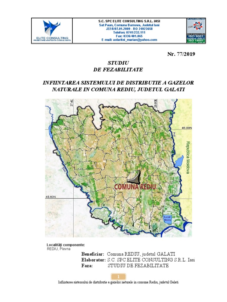 Infiintarea sistemului de distributie a gazelor naturale in comuna Rediu, judetul Galati