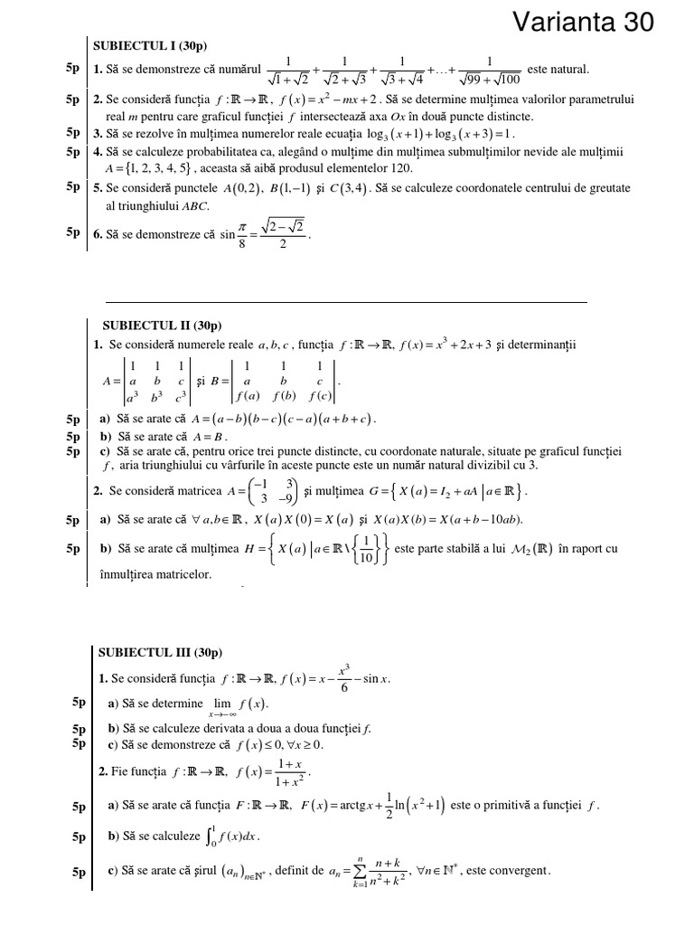 SUBIECTUL I (30p) – Varianta 030
