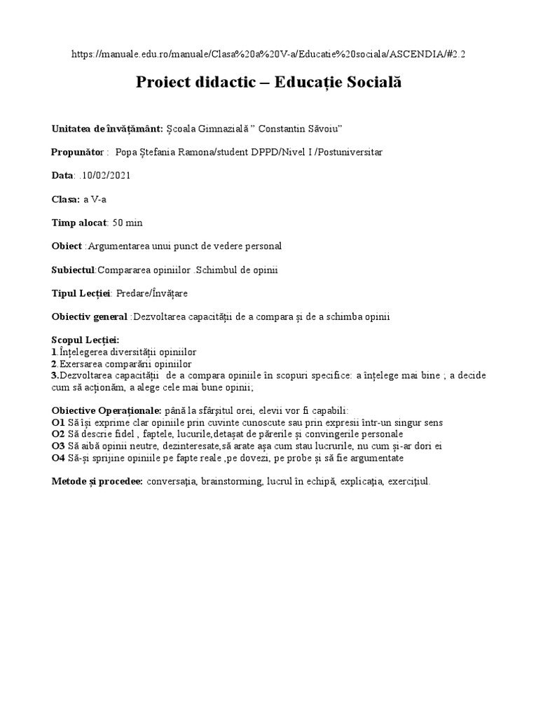 Proiect didactic – Educație Socială