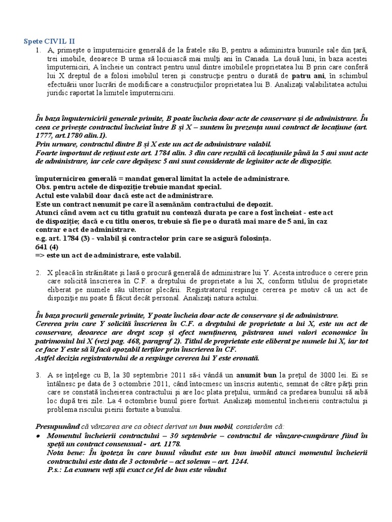 1. A, primeşte o împuternicire generală de la fratele său B, pentru a adiministra bunurile sale din ţară,