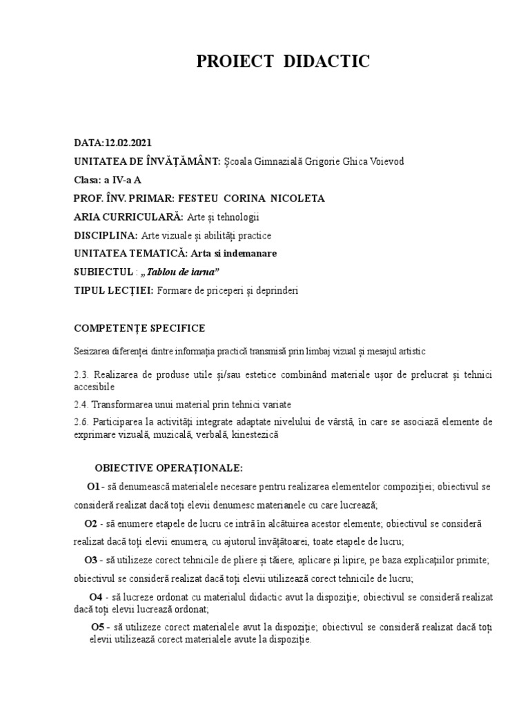 PROIECT DIDACTIC