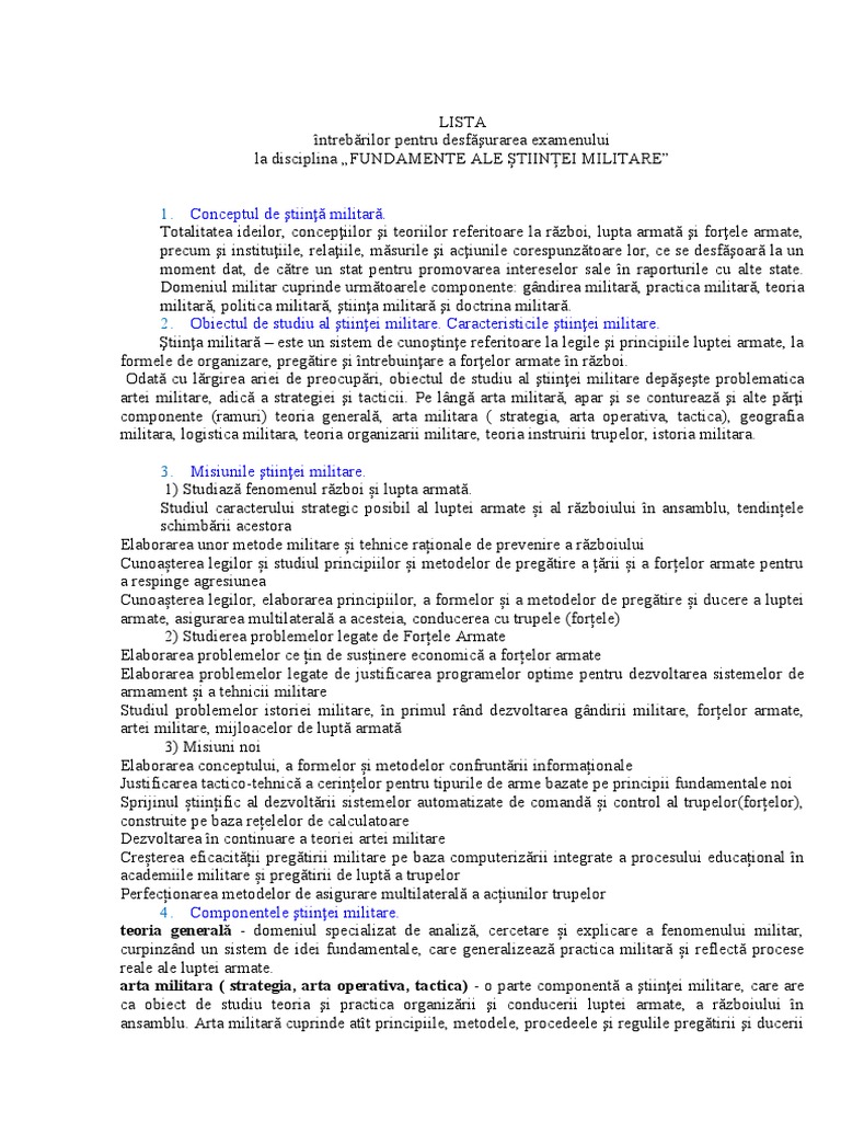 3. Misiunile ştiinţei militare.
