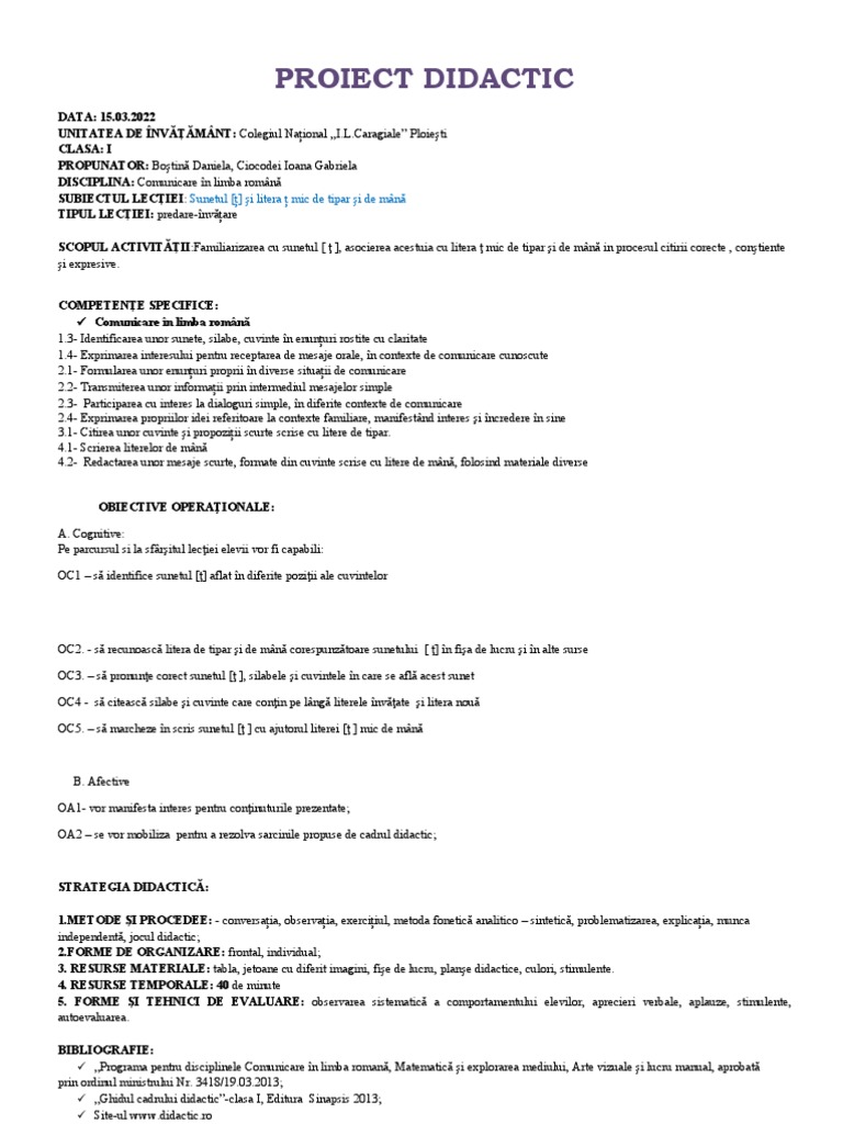 PROIECT DIDACTIC