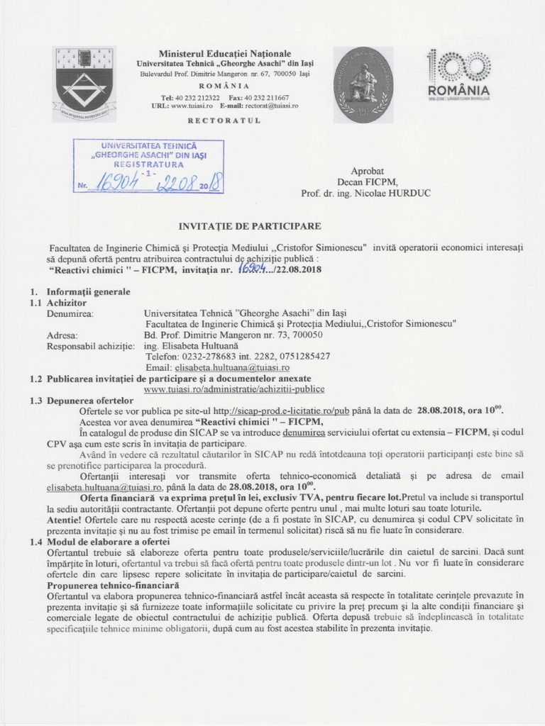 “Renctivi chimici "~ FICPM, invitatia nr. {0404...22 08.2018