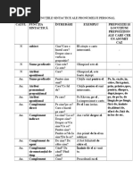 - numeral cardinal, ordinal, colectiv, fracionar, distributiv Crile de la cei doi au fost interesante. Mergem n grupuri de cte doi. Sanciunile mpotriva celor doi au fost aspre. Succesul datorit celor doi a fost impresionant. c) atribut substantival apoziional, care aduce o explicaie, face o precizare st n toate cele cinci cazuri, exprimndu-se prin: - substantiv comun sau propriu: Elevul Popescu nva. Pe elevul Popescu l-am vzut n ora. Pe colegul meu, pe Mihai, l-am vzut n parc. I-am dat vecinului meu, lui Gigel, o minge. Cartea biatului su, a studentului, mi-a folosit. Biete, elevule, vino la mine! - numeral cardinal, ordinal, colectiv, fracionar: Colegii mei, doi dintre ei, au fost la meci. Se ia aceast parte, o doime, din ntreg. Nu eliminm dect o parte, o treime. i dau copilului, celui de-al doilea, o minge. Crile lor, ale amndurora, mi-au fost de folos. d) atribut substantival n Ac. i D. fr prepoziie: Satisfacerea un timp a doleanelor este o necesitate. El este nepot Mariei. Am asistat la nmnarea de medalii unor sportivi. 2. Atributul pronominal se exprim prin pronume de diverse feluri i are aceleai feluri ca i atributul substantival: a) atributul pronominal genitival Crile lor se afl pe banc. b) atribut pronominal prepoziional: Crile de la el sunt interesante. Lauda de sine nu miroase a bine. De care carte citeti? c) atribut pronominal apoziional: Colegii, ei, n-au fost de acord cu propunerea fcut. Pe fratele meu, pe el, nu l vorbete nimeni de ru. Biete, tu de acolo, vino repede! d) atribut pronominal n dativ fr prepoziie: