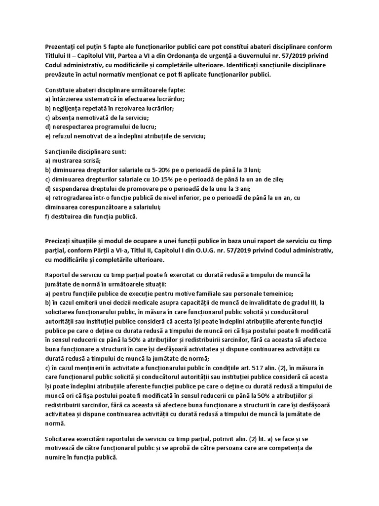 Codul administrativ, cu modificările şi completările ulterioare. Identificaţi sancţiunile disciplinare