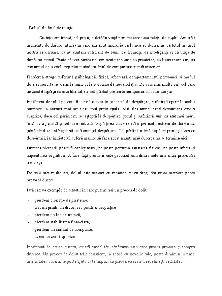 „Doliu” de final de relație