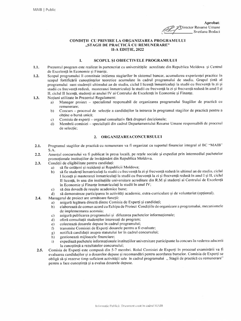 Programul stagiilor de practicd eu remunerare va fi organizat cu suportul financiar integral al BC “MAIB!