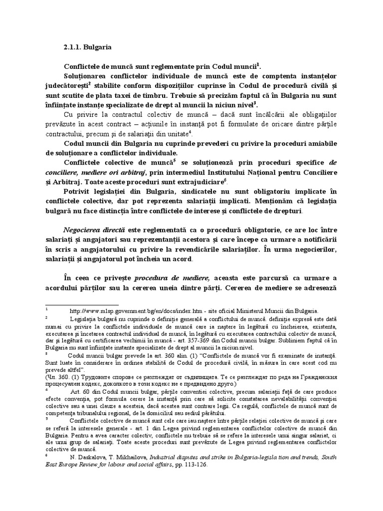 Legislația bulgară nu cuprinde o definiție generală a conflictului de muncă. definiție expresă este dată