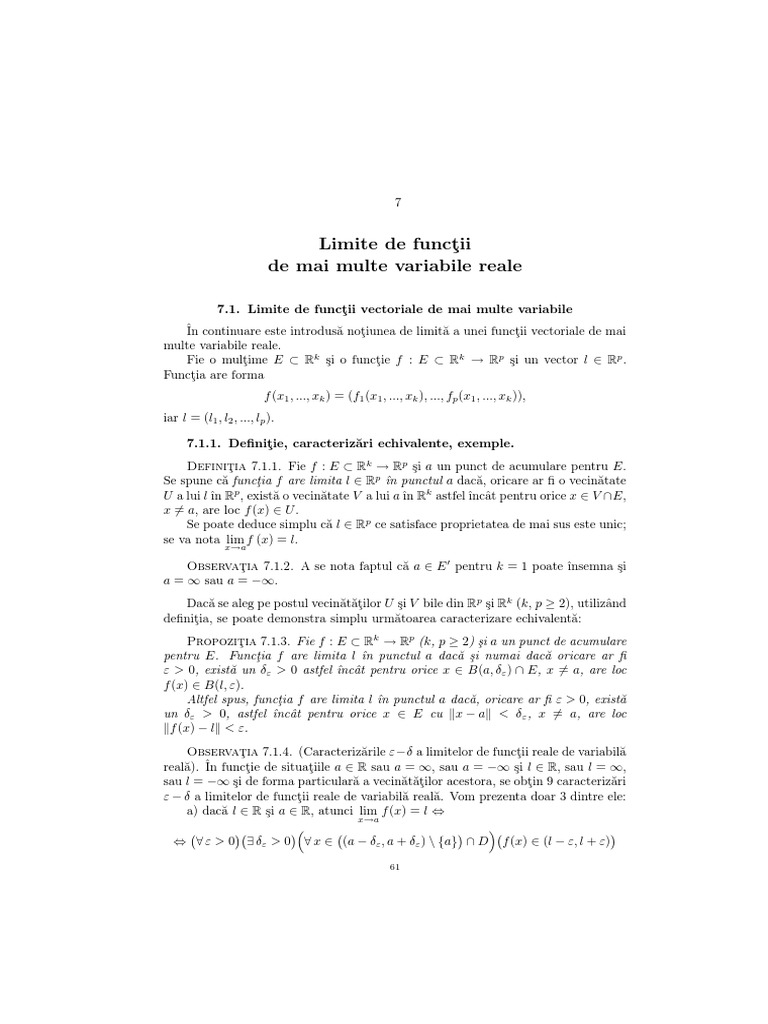 62 7. LIMITE DE FUNCŢII DE MAI MULTE VARIABILE REALE