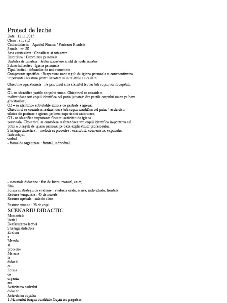 Proiect de Lectie