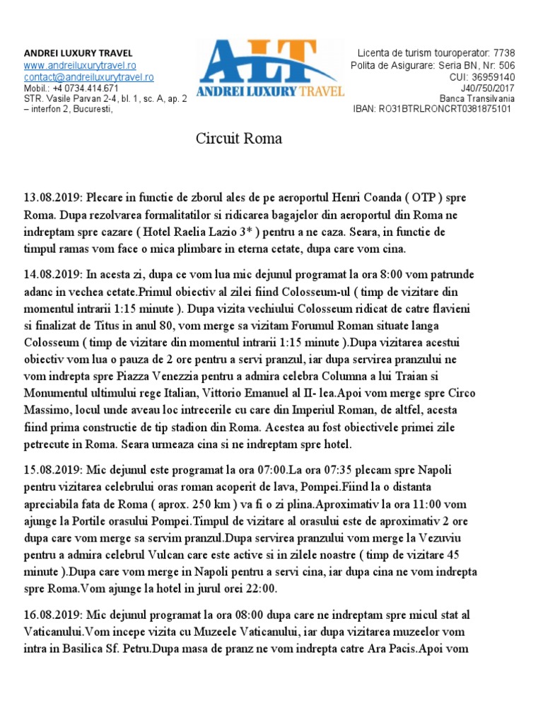 15.08.2019: Mic dejunul este programat la ora 07:[Link] ora 07:35 plecam spre Napoli