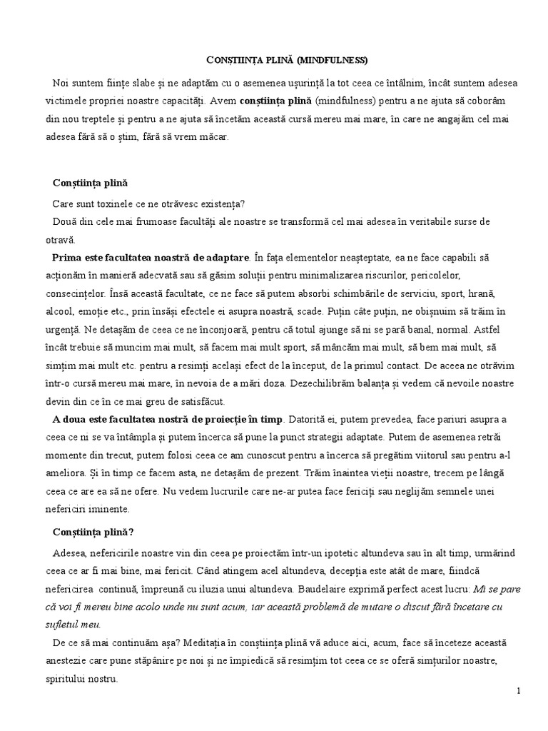 victimele propriei noastre capacități. Avem conștiința plină (mindfulness) pentru a ne ajuta să coborâm