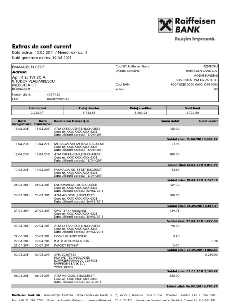 EMANUEL N SERIF/Num`r client: 4957453/Nr. extras: 4/Cod IBAN: RO57 RZBR 0000 0600 1318 1085