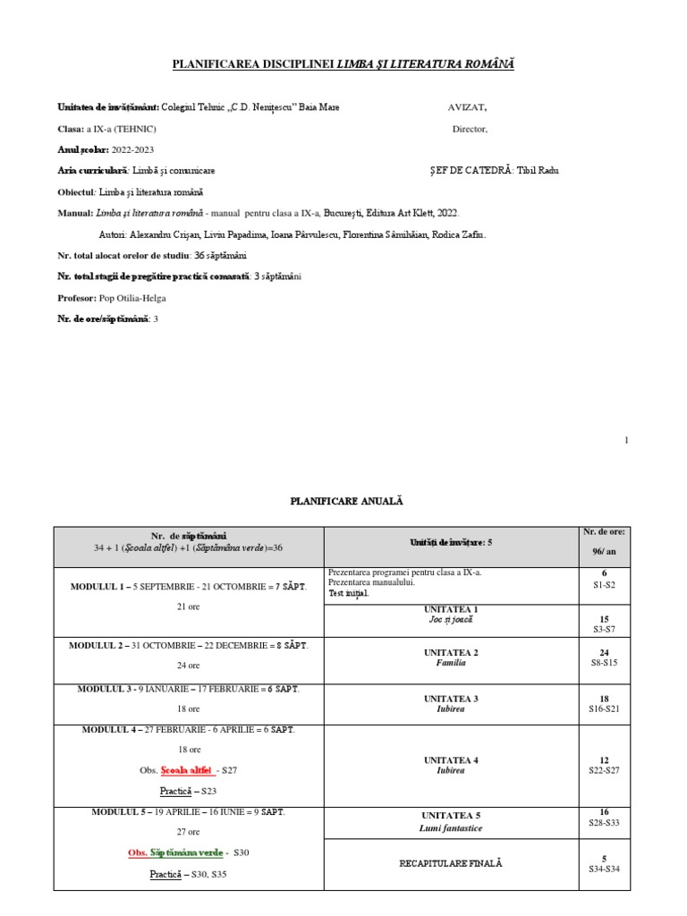 34 + 1 (Școala altfel) +1 (Săptămâna verde)=36 96/ an