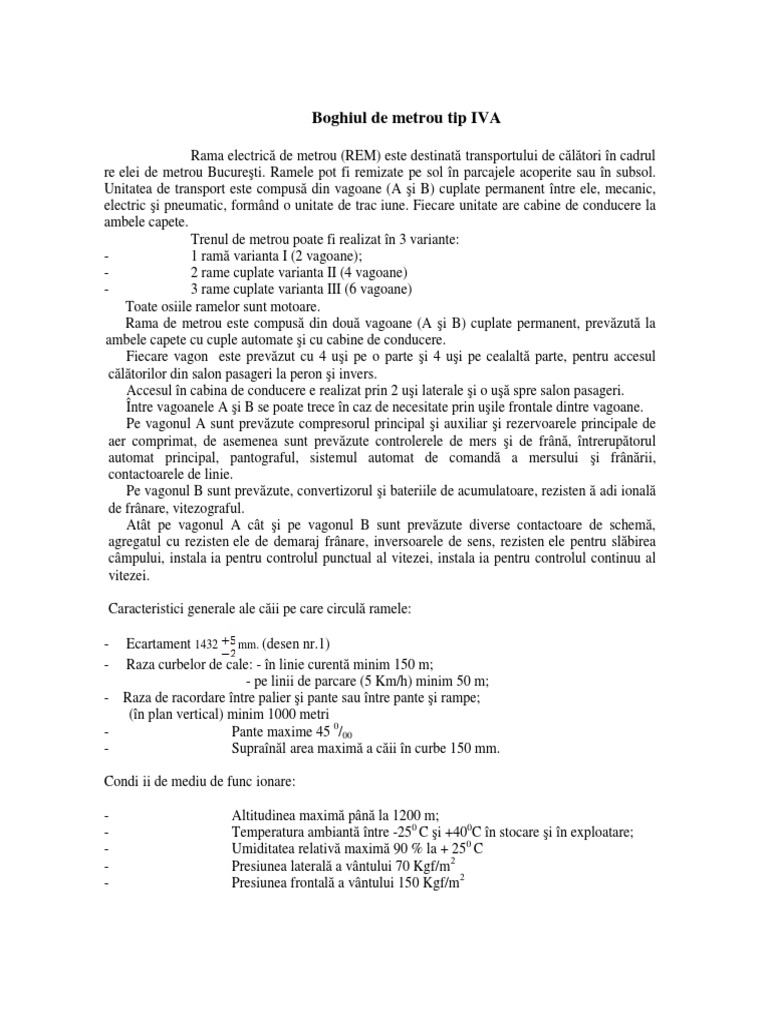 Descrierea şi funcţionarea boghiului pentru ramele electrice de metrou
